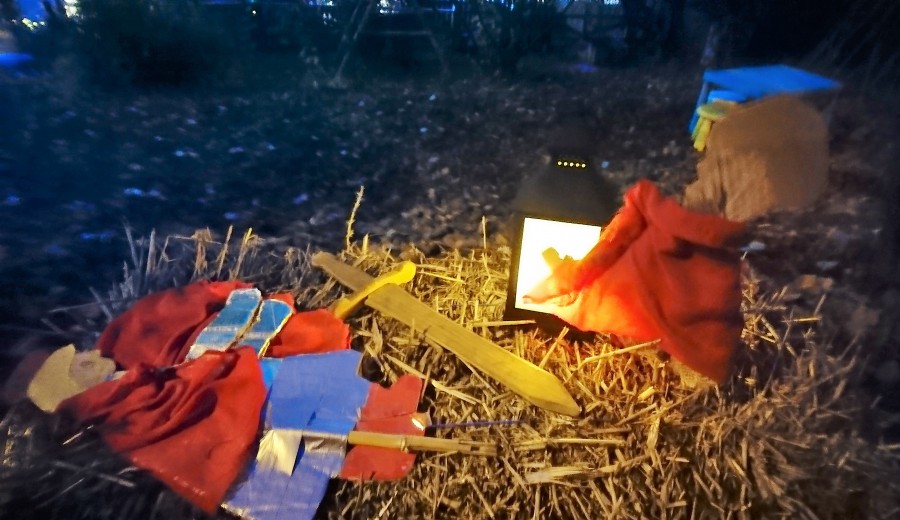 Unser heutiger Abenteuertreff stand ganz im Zeichen der Weihnachtsgeschichte. Wir haben Bilderbücher dazu angeschaut und gelesen, haben ganz große Krippenfiguren selbst gebastelt und haben aus dem Gartenhäuschen einen "Stall" gezaubert, in den wir dann die Krippenfiguren hinein gesetzt haben.