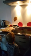 Dazu haben wir ganz tolle und lustige Schattenspiele gemacht und Fledermaus-Laternen gebastelt. Danach gab es noch ein Indoor-Picknick mit selbst gemachten Apfelpfannkuchen...mmmhhh...lecker...